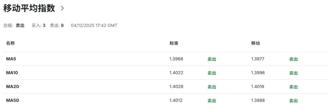 技术指标显示,日线级别布林带上轨切入点指向的1.4130区域水平为汇价提供短期动态阻力,布林带中轨运行线指向1.4035区域水平为其走势界定潜在强弱分化,布林带下轨指向的1.3940区域水平为汇价提供短期动态支撑。当前汇价于布林带下轨附近区域运行,显示空头动能占据主导优势,下行风险加剧。布林带开口呈现微弱扩张迹象,表明短期波动率有所上升。与此同时,14日RSI相对强弱指标降至40.30附近偏弱区域,表明当前价格走势处于偏弱格局,潜在下行风险加剧。