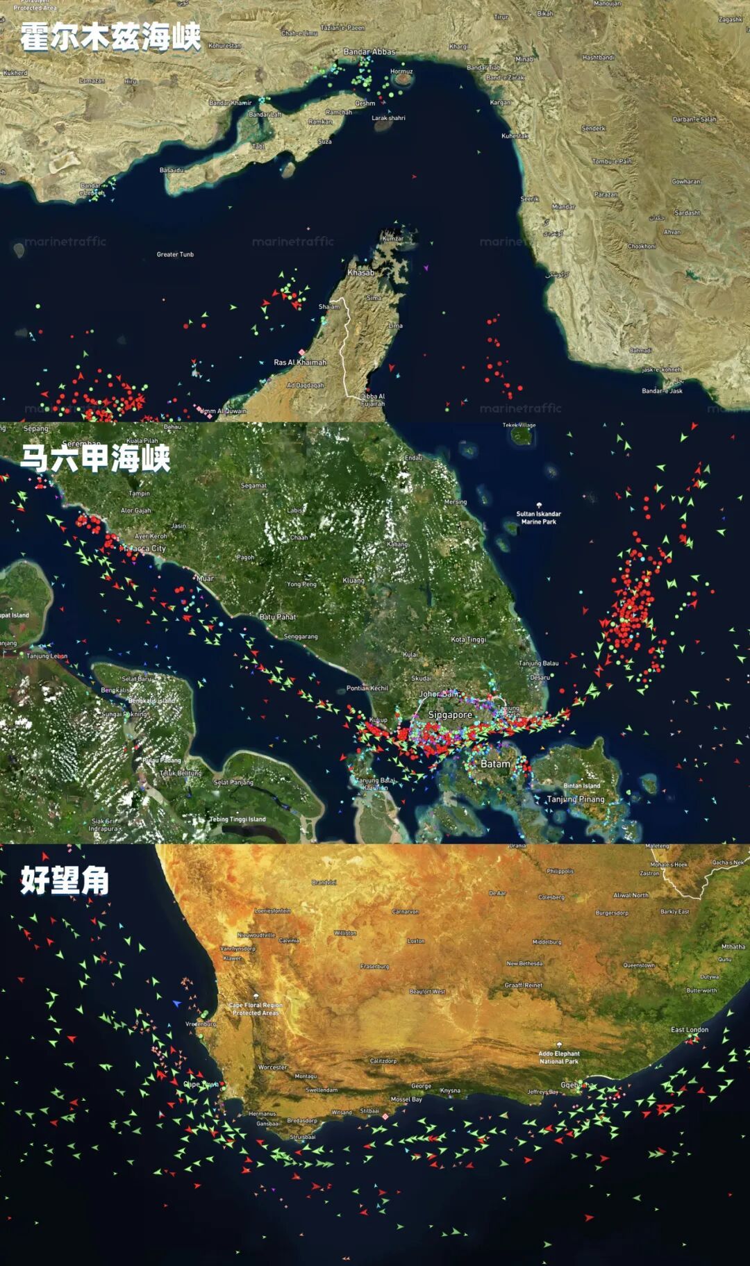 霍尔木兹海峡、马六甲海峡、好望角